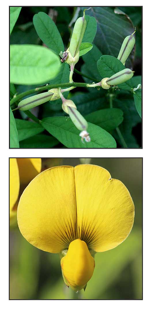 • Kalog-kalog is a half-woody plant growing to a height of 1 meter high. Leaves are alternate, simple, oblanceolate, 6 to 8 centimeters long, 2 to 2.5 centimeters wide, and with rounded ends. Pea flowers are yellow, arranged along a simple terminal flowering stalk (raceme) about 15 centimeters long. Fruits are inflated, smooth, cylindrical pods, 4 centimeters long and 1 centimeter wide, containing several, loose, flattened, black rounded seeds, 3 millimeters in diameter.
