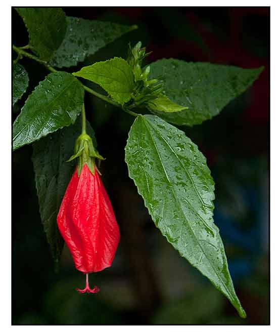 • M. penduliflorus is often confused with Malvaviscus arboreus var. arboreus, but easily differentiated by its spectacular, pendulous flowers. • Flowers are generally scarlet, but variations of pink, orange and white exist. • Erect shrubs, ca 2-3 m high. Branchlets are hairy (hairs recurved) to hairless. Stipules are threadlike, about 4 mm, falling off. Leaf-stalks are 1-2 cm, hairy. Leaves 5-20 * 3-12 cm ovate to elliptic or lanceolate, usually rounded at base, long acuminate at apex, crenate-serrate; petioles 1-10cm long; stipules 3-5 mm long, linear. Flowers are red, solitary, axillary, pendulous, tubular, opening slightly at the top; pedicels 2-6 cm long. Epicalyx segments 6 or more, 1-1.5 cm long, oblong, somewhat spathulate. Calyx slightly longer than epicalyx, fused to the middle above; lobes lanceolate. Corolla 5-7 cm long, pendulous. Staminal column exserted. Carpels 5; style branches 10, basally connate; stigmas capitate. Fruits a fleshy schizocarp. (6) Distribution Constituents Properties Studies Availability |
