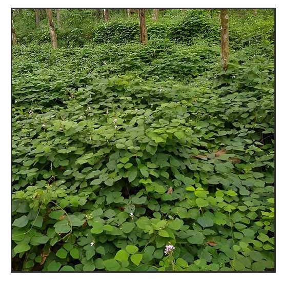 - Agrofrestry: Mainly used as cover crop. It is one of the most used cover crops in plantations of rubber, oil palm, and coconut in the humid Asian tropics. Planted on sloping sites to control soil erosion and in rotation with annual crops as a green manure. Its ability to smother weeds makes it a useful pioneer legume grown in combination with other species. (2) Its main advantage as cover crop is the comparable high nitrogen accumulation and the improvement of soil structure due to its deep rooting system. (13) Considered the poster plant of green manure.