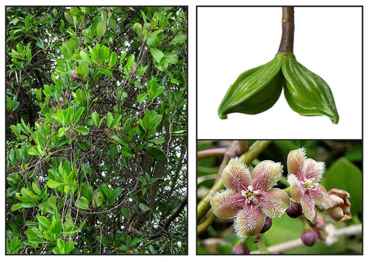 | OTHER IMAGE SOURCE: Finlaysonia obovata Leaf and splitting fruit / © uforest.org / Non-commercial use / Images modified / Click on images or link to go to source page / URBANFOREST |