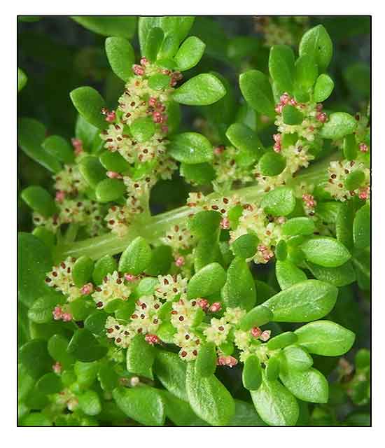 in shape, 2 to 5 millimeters in length. Flowers are very small and crowded in