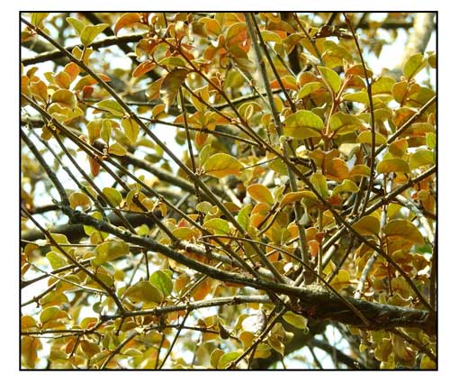 • Growth form: Parasitic shrub, able to grow up to 0.5 - 1 m in length. Foliage: Opposite green leaves, ovate to ovate-oblong, measuring about 2.5 - 6 by 1.5 - 4 cm, both surfaces becoming smooth as leaves mature, leaf margins reddish brown, leaf stalk measuring about 8 - 10 mm long. Flowers: Tubular, curved flowers, usually 2 - 4 in an umbel, peduncle measuring about 2 - 4 mm, stellate hairy, bracts triangular in shape, pedicel measuring about 6 - 7 mm, ovoid calyx, style red in colour. Fruit: Ellipsoid berry yellow in colour, measuring about 8 - 10 by 5 - 6 mm, surface becoming smooth as fruit matures. (Flora & Fauna Web)