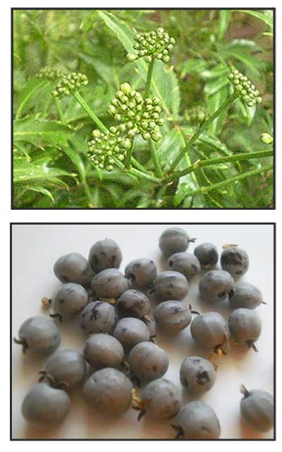 • Papua is an erect shrub, growing growing 1 to 2.5 meters high. Leaves are decompound, 3-pinnate, and up to 30 centimeters long. The pinnae are 6 to 10, the upper ones are shorter. Leaflets and ultimate segments are very diverse, mostly lanceolate, 5 to 10 centimeters long; the terminal segments are usually larger than the others and more often lobed, pointed at the tip, sharply and irregularly toothed. Flowers are numerous, umbellately arranged, shortly stalked, borne on terminal inflorescences in the upper axils of the leaves, up to 15 centimeters long. Fruit is broadly ovoid, compressed and about 4 centimeters long.