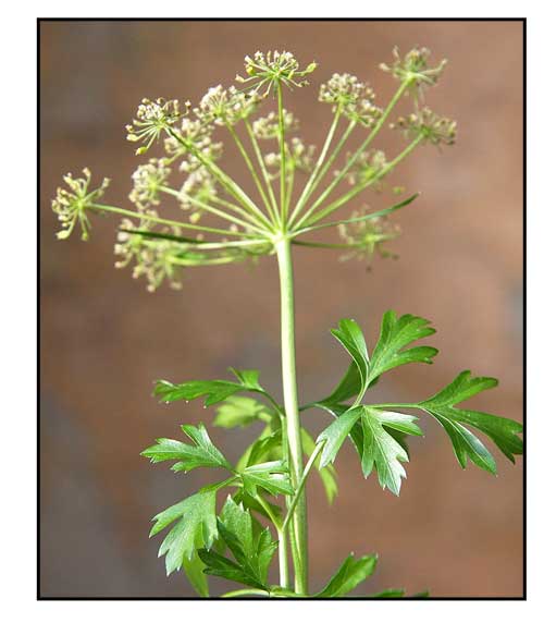 Petroselinum crispum (Parsley or garden parsley) is a species of flowering plant in the family Apiaceae, native to Greece, Morocco, and the former Yugoslavia. It is widely cultivated as herb and vegetable. (46)