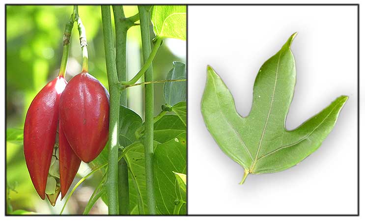 | OTHER IMAGE SOURCE: Adenia heterophylla leaf / © crassa.cocolog-nifty / Non-commercial use / mage modifed / Click on image or link to go to source page / Crass.cocolog |
