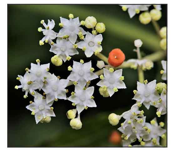 • Antimicrobial / Antioxidant / Flowers and Fruits: Study showed flower and fruit extracts of Sambucus javanica have antimicrobial activity with ZOI of 11.9 mm and 13.7 mm against E. coli and S. aureus. MIC against E. coli and S. aureus was 12.5%. The highest antioxidant activity was with the fresh fruit extract with IC50 of 58.74 µg/mL. (21)