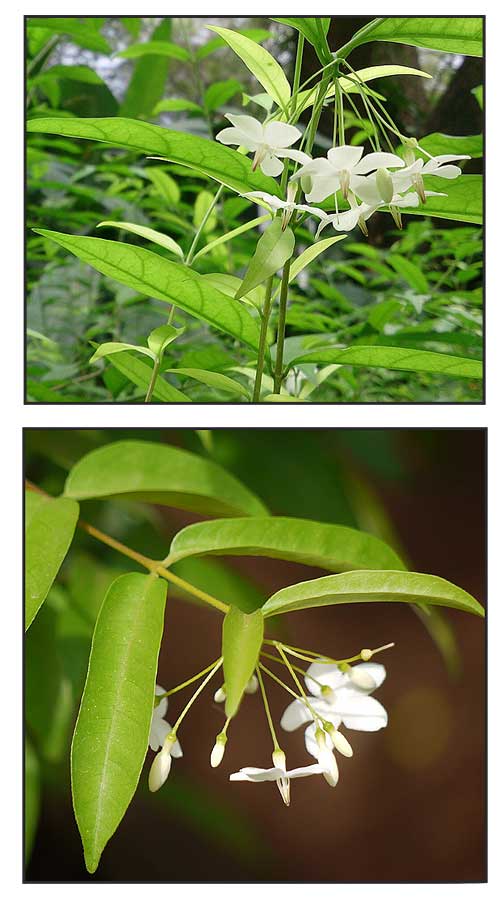 • Latex / Benzoxacinoids / Leaves: Study evaluated different organs and leaves of Wrightia religiosa and the stem bark of W. pubescens. Both yielded seven known compounds, all specialized metabolites from indolic and polyphenolic biosynthetic pathways. Leaves of W. religiosa yielded 3-indole D-apio-ß-D-furanosyl-(1->6)-ß-D-glucopyranoside (1) and benzouracil (2), The latex yielded blepharigenin (4). The isolated specialized metabolites did not contribute appreciably to the antioxidant properties of the plant extracts nor did it show noteworthy arti-feedant response of the insect pest Spodoptera littoralis. (10)