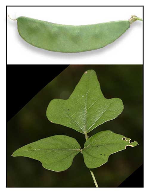 | IMAGE SOURCE: Dolichos trilobus pod. / © eziam / CC BY-NC 4.0 International / Image modified / Click onn image or link to go to source page / iNaturalist |